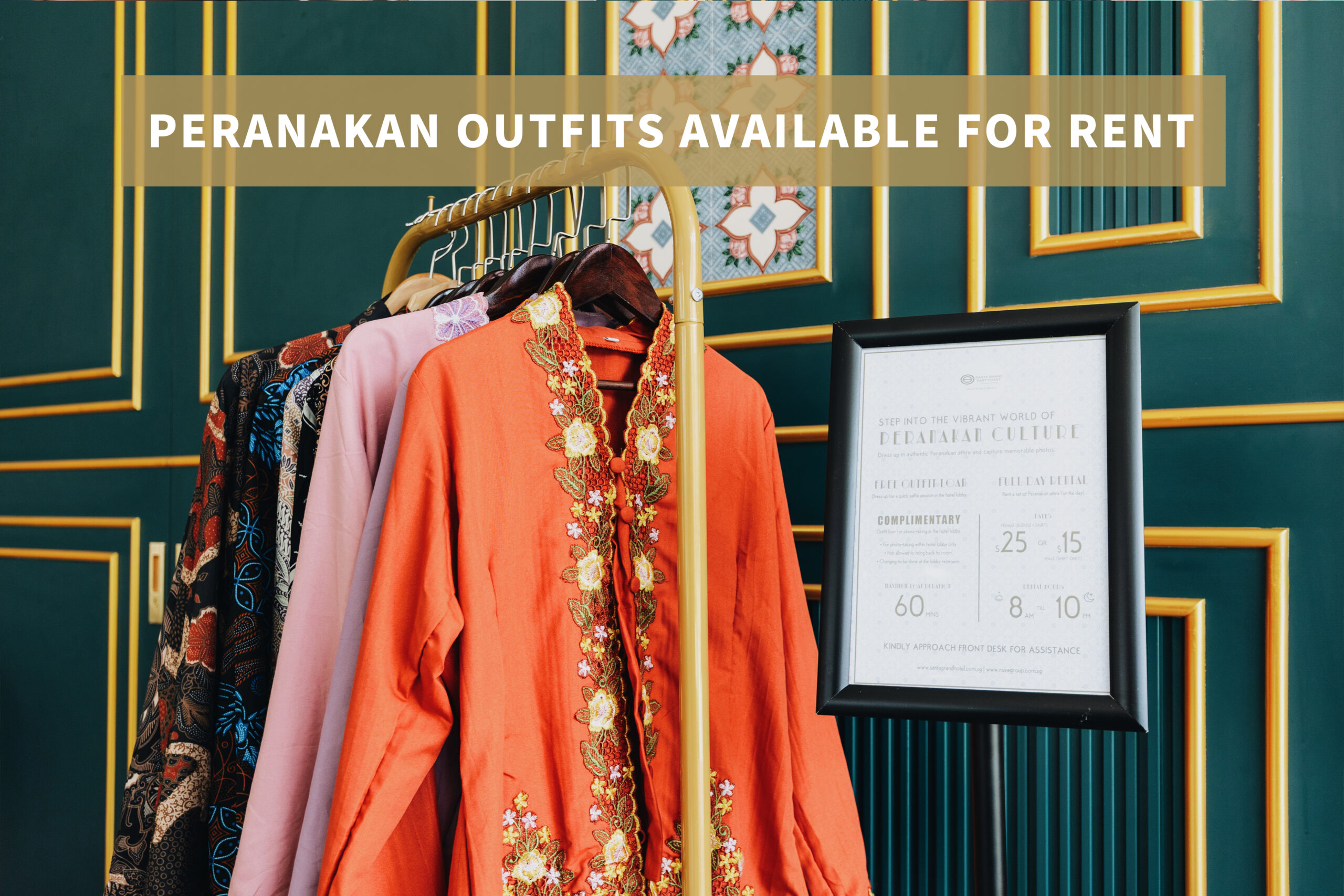 Want to try on Peranakan attire without committing to a full-day rental? We offer complimentary outfit loans for guests to have fun and take memorable photos right in our hotel lobby.